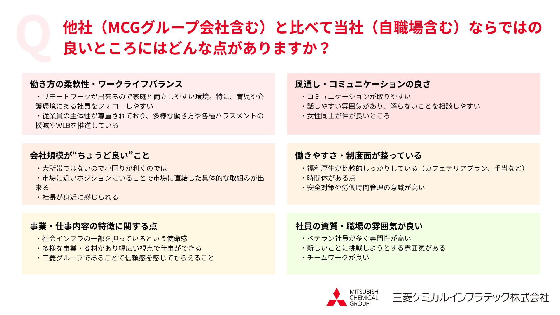 他社と比べて三菱ケミカルインフラテックならではの良いところは?