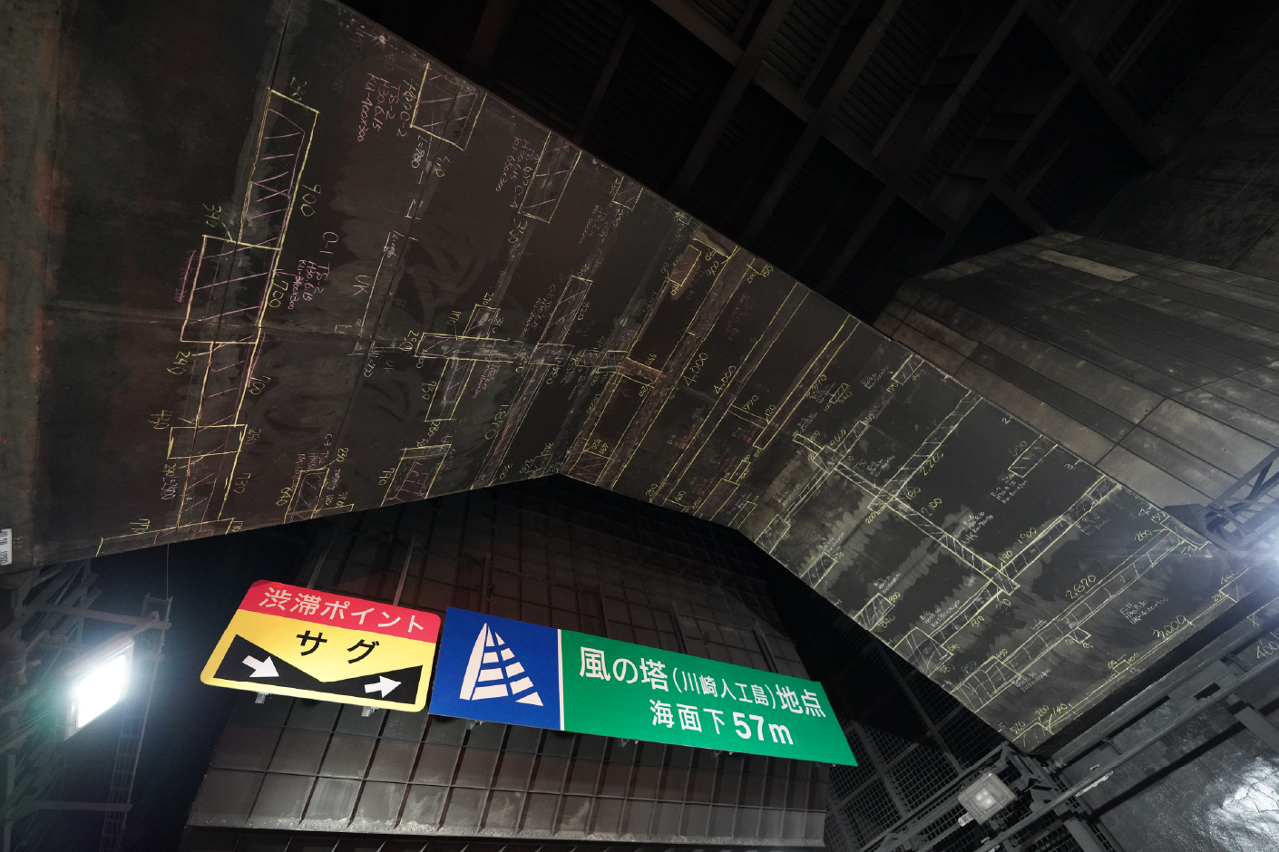 道路やトンネルで見かける看板は、遠くからでも見えるように色や文字が丁寧に工夫されています。撮影中、そばに立つ誘導員さんが旗で合図を送る姿に、看板も一緒に現場を支えているように感じました。看板くんが「誘導員さんがいてくれると安心するんだ。いつもありがとう」と語りかけてくるようで、思わず胸が温かくなりました。壁に残るチョーク跡にも、現場の人たちの息づかいが見えました。